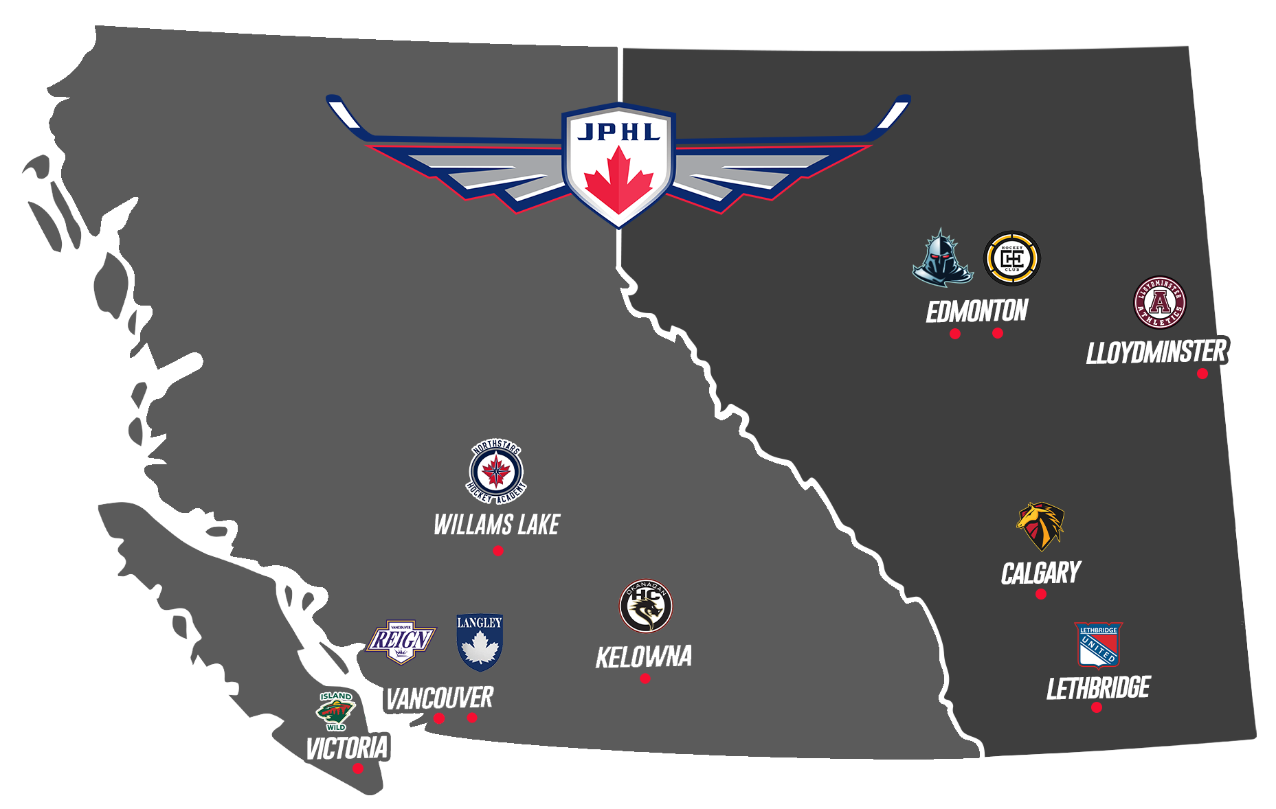 A HUB is a designated centre of excellence that brings together both hockey and academic components. The Junior Prospects Hockey League's HUB model includes facilities in British Columbia and Alberta, connecting players and teams through the JPHL's Academy Hockey Division. Not only is the HUB model geographically positioned to have a healthy recruitment footprint, it is also protected by capped growth in any single division. This means each HUB can focus on ensuring the highest level of hockey development and instruction without arbitrary limitations. Each HUB is staffed with key personnel to support an athlete's growth, development, and journey to the next level. Core positions include a General Manager, Academic Advisor, Skating, Technical, and Goalie Coaches, Team Coaches and an Athletic Trainer. These individuals are all respected leaders in the hockey community and were specifically invited to participate in their respective HUB based on their expertise, networks and relationship.